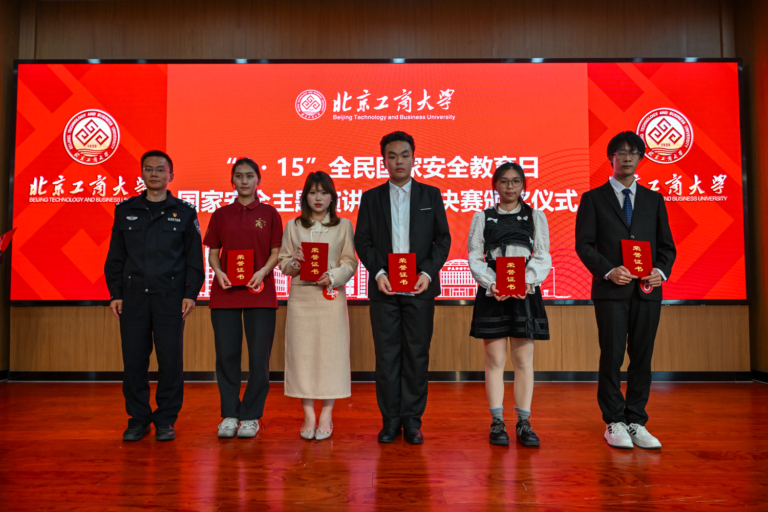 随后,与会领导为演讲比赛一、二、三等奖选手颁发荣誉证书,对获奖学子表示祝贺,激励全体学生以获奖选手为榜样,主动学习国家安全知识,勇担青年使命,争做国家安全的坚定守护者、积极传播者和自觉践行者。