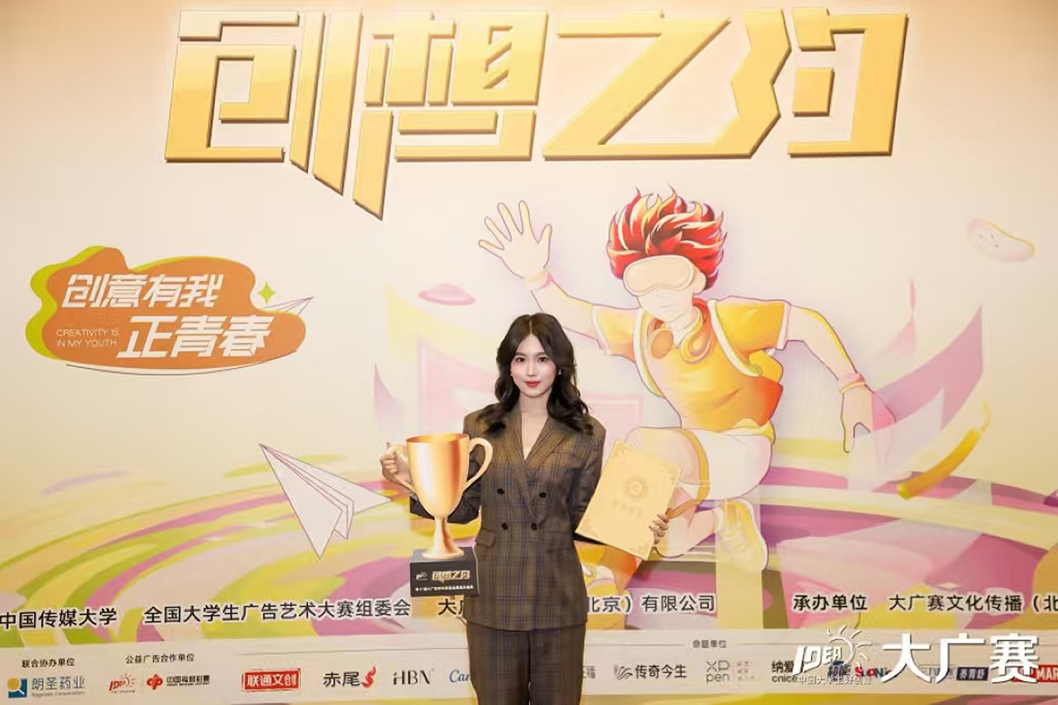 我校广告学专业的吕佳凝、石一彤、时玥、赵思藤四位同学组成的创作团队,凭借为泡泡玛特Nyota塔塔系列量身打造的短视频类作品《高考生的60s精神假期》,从全国众多参赛作品中脱颖而出,成功斩获全国二等奖!团队代表吕佳凝同学与周古月老师受邀出席颁奖盛典,在颁奖仪式中接过了这份承载创意实力与实践成果的荣誉证书,为学校赢得了荣光。