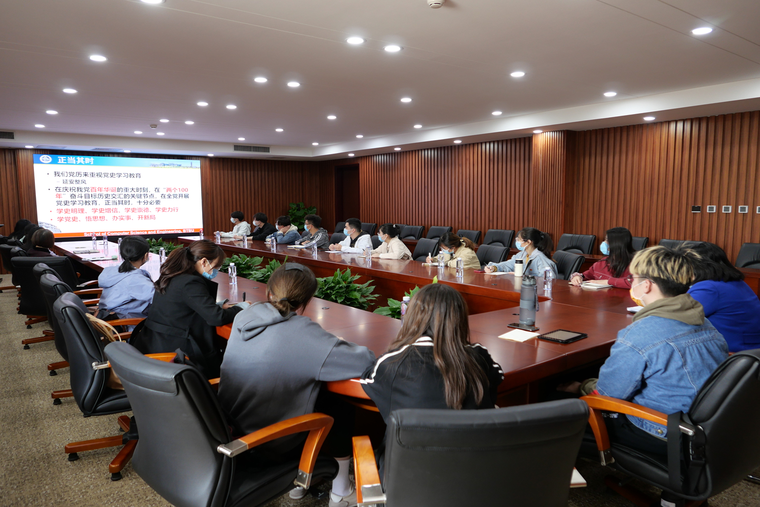 杨秀萍介绍了学校党史学习教育的整体安排,传达了学校党委书记黄先开题为“学好百年党史 汲取奋斗力量 努力建设高水平研究型大学”的讲话精神,同时安排部署了学院党史学习计划实施方案。要求各支部提高站位,高度重视,认真组织、落实好本支部的党史学习教育,为党的百年华诞献礼。