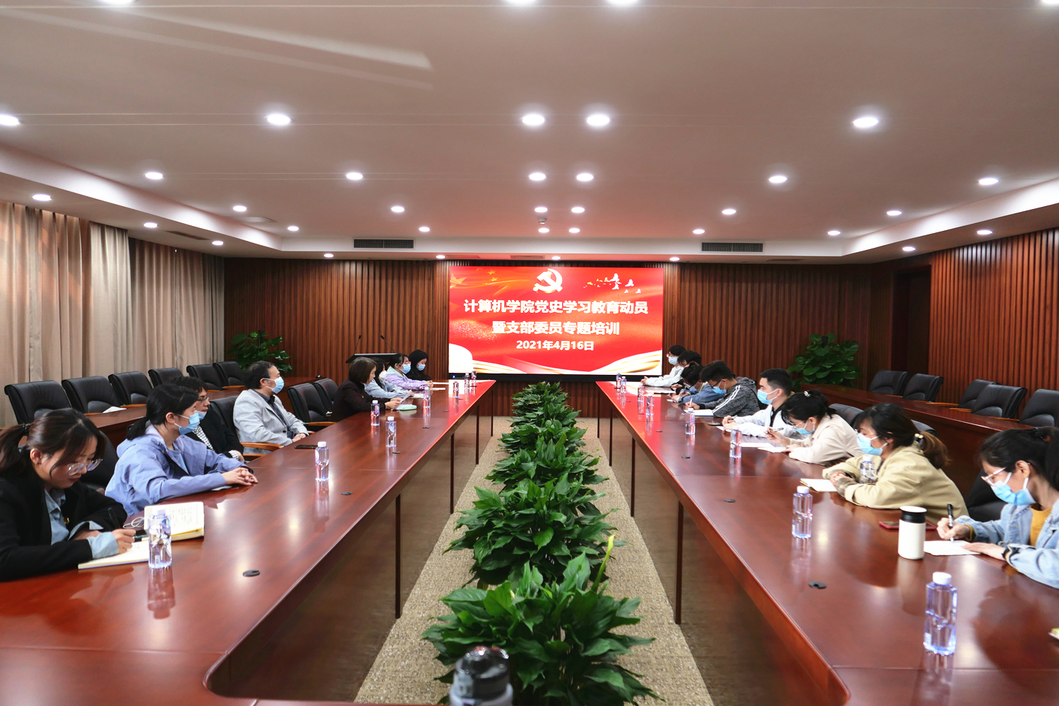 4月16日,计算机学院在良乡主校区召开党史学习教育动员会暨党支部委员专题培训。学院党委书记蔡强、副书记杨秀萍,专职组织员、党建辅导员,以及各党支部委员参加了会议。会议由杨秀萍主持。