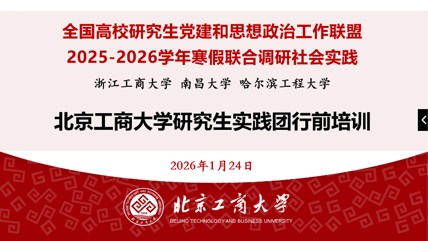 张倩作总结讲话。她向全体参与实践的研究生、悉心指导的老师及各保障部门表示衷心感谢,并对本次寒假社会实践的圆满开展予以充分肯定。她回顾学校“研读中国”实践工程的建设成果,2025年创设以来已组织6场外出实践活动,覆盖300余名研究生,为寒假实践奠定坚实基础。本次寒假实践与各兄弟高校、招生就业处以及各学院通力合作,通过前期专题培训、每日报备、全程跟进等措施,确保实践活动安全有序、高效推进。面向未来,张倩讲到,2026年研工部将进一步围绕国家战略、科创前沿等主题打造精品实践活动,构建常态化精品实践与假期专项实践互补的育人格局,引导研究生同学们在行走中体悟伟大改革实践,真正读懂中国这片热土的生机和力量。她讲到,将进一步结合国家“十五五”规划要求,以“研读中国”研究生实践工程为核心品牌,从课程体系、实践平台、内容创新、保障激励等方面深化探索实践育人体系建设。她对研究生提出三点希望:一是总结实践所得,筑牢成长根基,做到学思用贯通、知信行统一;二是深化交流互鉴,凝聚发展智慧,丰富实践成果展现形式,加强校际合作;三是勇担青春使命,传递北工商声音,当好学校“行走的名片”,用北工商青年自己的语言讲好北工商发展奋进的故事,持续助力招生宣传,以青春之我诠释新时代研究生的责任与担当。