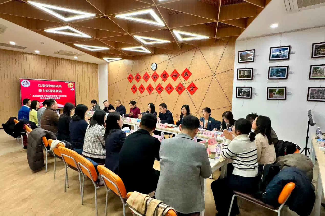 12月15日下午,北京高校第十四届青年教师教学基本功比赛、第三届青年管理干部岗位技能竞赛校内总结暨研讨培训会在良乡校区教职工之家多功能厅召开。校党委副书记宋晓欣出席,获奖选手、指导教师代表、分工会负责人、相关职能部门负责人及40岁以下青年教师代表等参会,工会常务副主席杜亚辉主持会议。