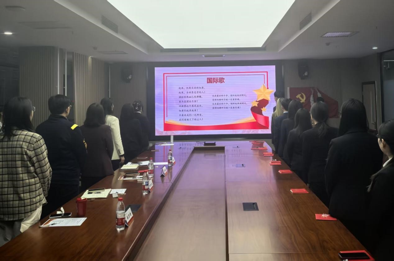 新老党员共同合唱国际歌,集体宣誓仪式在雄壮的国际歌声中结束。
