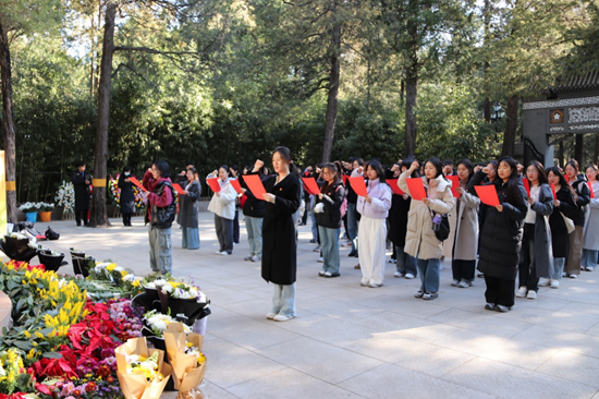 为继承先辈遗志,汲取奋进力量,筑牢信仰之基,3月30日,商学院学生党员、入党积极分子、团员青年骨干前往李大钊烈士陵园、良乡烈士陵园,开展“烽火印记·京华记忆”清明祭扫活动。在庄严肃穆的氛围中,师生们通过默哀、献花、重温誓词等形式,缅怀革命先烈,传承红色基因。商学院党建辅导员潘萌组织参加。