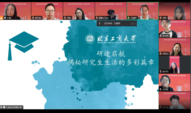 最后,经济学院应用经济学在读研究生刘芸、郭沛杰分享了各自的考研经验;金融专业在读研究生姚淑晨向各位营员分享了如何进行文献的检索与阅读;理论经济学在读研究生王慧妍,分享了多姿多彩的研究生学习生活。
