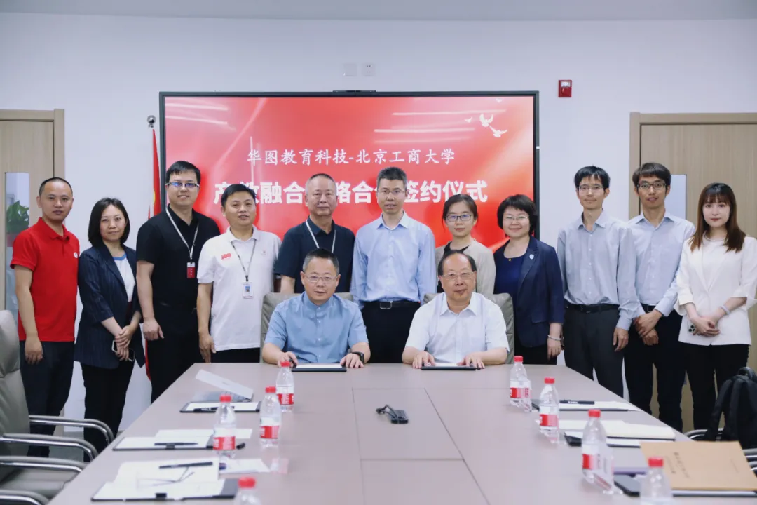 华图教育集团总裁、创始人易定宏对黄先开一行表示热烈欢迎,并对公司发展历程、业务范围和企业文化等情况进行了简要介绍。他表示,华图教育集团与北京工商大学的合作是校企合作的典范,双方在战略高度上达成共识,本着资源共享、优势互补、发展互促的原则和“校企合作、产学共赢”的目标,积极推动产教融合战略合作,努力把华图现象研究打造成为经典商业案例。