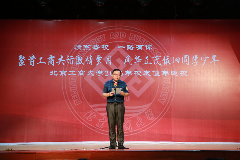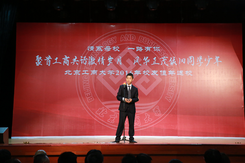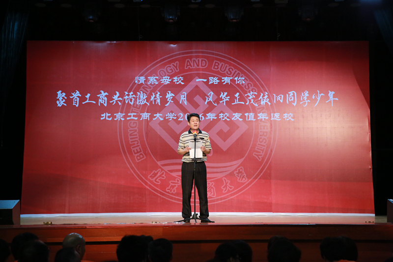 孙宝国校长致辞。他谈到,今天是学校第一次举办校友值年返校活动,各位校友的光临,表达了对母校的真诚关爱。他代表学校对各地校友的到来表示热烈的欢迎,向广大校友表示亲切地问候和美好的祝愿,并对校友们给予母校的关心和支持表示衷心的感谢!他表示,66年来在几代北工商人的不懈努力下,学校校园面积扩大、办学层次与办学水平提高、科研实力增强,国际化水平提高,学校综合实力显著提高。广大校友在各行各业勤奋实干,为国家和社会做出了突出贡献,为学校争得了荣誉,母校为校友们感到无比自豪和骄傲。孙校长介绍了校友企业和个人捐赠及奖助学金设立情况,表示这些都蕴含着校友们对母校的美好祝愿与殷切期盼,并代表学校向各位校友表示最诚挚的谢意。孙校长提出,学校未来需要全体北工商人的无私奉献和不懈努力,希望广大校友继续关心和支持母校的发展,让深醇、绵长的母校情结将所有“北工商人”更加紧密地团结在一起,继往开来、奋发拼搏,共同谱写新的美好篇章。