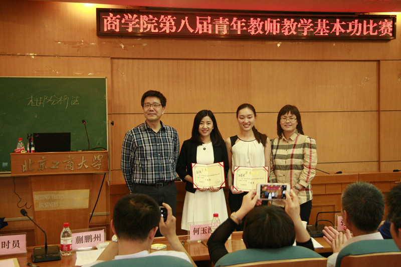 为提升青年教师教学基本功,助力青年教师迅速成长,为青年教师提供展示平台,6月15日下午,商学院在阜成路校区举办“商学院第八届青年教师教学基本功比赛”,学院2013年至2015年入职的专任教师共17名参加比赛。本次比赛由商学院分工会组织,邀请了教务处处长左敏出席,商学院曾获得学校优秀教学奖并具有丰富教学经验的王真、王敬武、严欢、何玉润、张继德、欧阳爱平、蒯鹏州、穆林娟老师担任评委。学院领导班子和全体教师现场观摩。本次比赛由物流管理系系主任张浩老师主持。