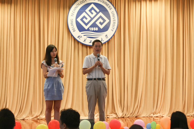 李朝鲜副校长首先致辞,他代表学校对留学生来我校学习表示欢迎,并对留学生们致以节日的祝贺。他说,经过几年的不断努力,学校外国留学生的规模不断扩大,极大地促进了学校的国际化发展。外国留学生们来自遥远的异国他乡,跨越千山万水来到中国,来到北京工商大学,希望留学生们在这个新的大家庭里,了解中国文化和北工商文化,与中国学子一起共同学习,互相关心,互相帮助,愉快地度过大学时光。最后他祝愿各位留学生在北京工商大学学习愉快,生活幸福。