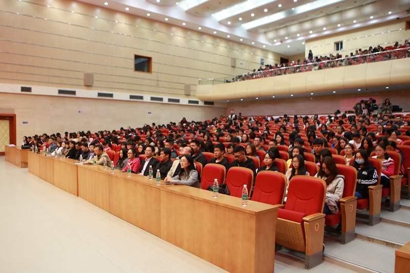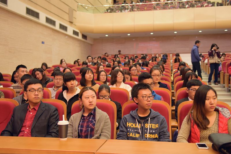 获得校内数学竞赛一等奖的食品学院应化151班崔浩文同学、获得英语四级考试二等奖的外国语学院商务英语142班屈宁鸥同学分别发言,表达了对学校、老师和同学们的感谢,分享了自己的学习方法和心得体会。崔浩文介绍了自己如何度过大学最初的迷茫期,最终选择在教室、图书馆、操场之间不断地“充电”、“蓄电”、“放电”,努力学习的过程。