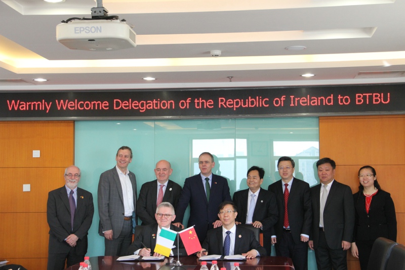317日,爱尔兰教育与技能部部长乔·麦克休(Joseph McHugh)在爱尔兰驻华大使李修文(Eoin OLeary)和爱尔兰考克大学校长谢百成(Prof.Patrick OShea)的陪同下率团访问我校,并出席在我校举行的“北工商爱尔兰日”活动。孙宝国校长在阜成路校区会见了代表团一行。会谈由贾英民副校长主持。