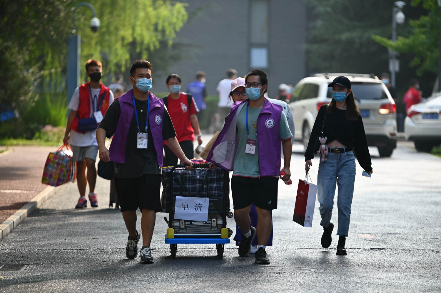 晨曦初露,迎新志愿者们早早等候在地铁站前,热情迎接新生们的到来。在疫情防控常态化要求下,送新生的车辆和家长亲友不能入校,2020级新生们独自报到,800余名志愿者们变身“行李搬运工”、“校园引路人”,穿梭于车站、校门、报到地点与宿舍之间,接站志愿者、学院志愿者无缝衔接,全程帮助新生顺利入校,忙碌的身影构成了迎新现场最靓丽的风景线。一名经济学院的新生感叹道:“入校前担心没有家长帮忙,独自搬运行李和报到会手忙脚乱,到了迎新现场发现从入校开始就有学长学姐们来帮忙,帮助大家搬运行李、答疑解惑,入校第一天就让我感受到北工商是一个十分有爱温暖的大家庭。”
