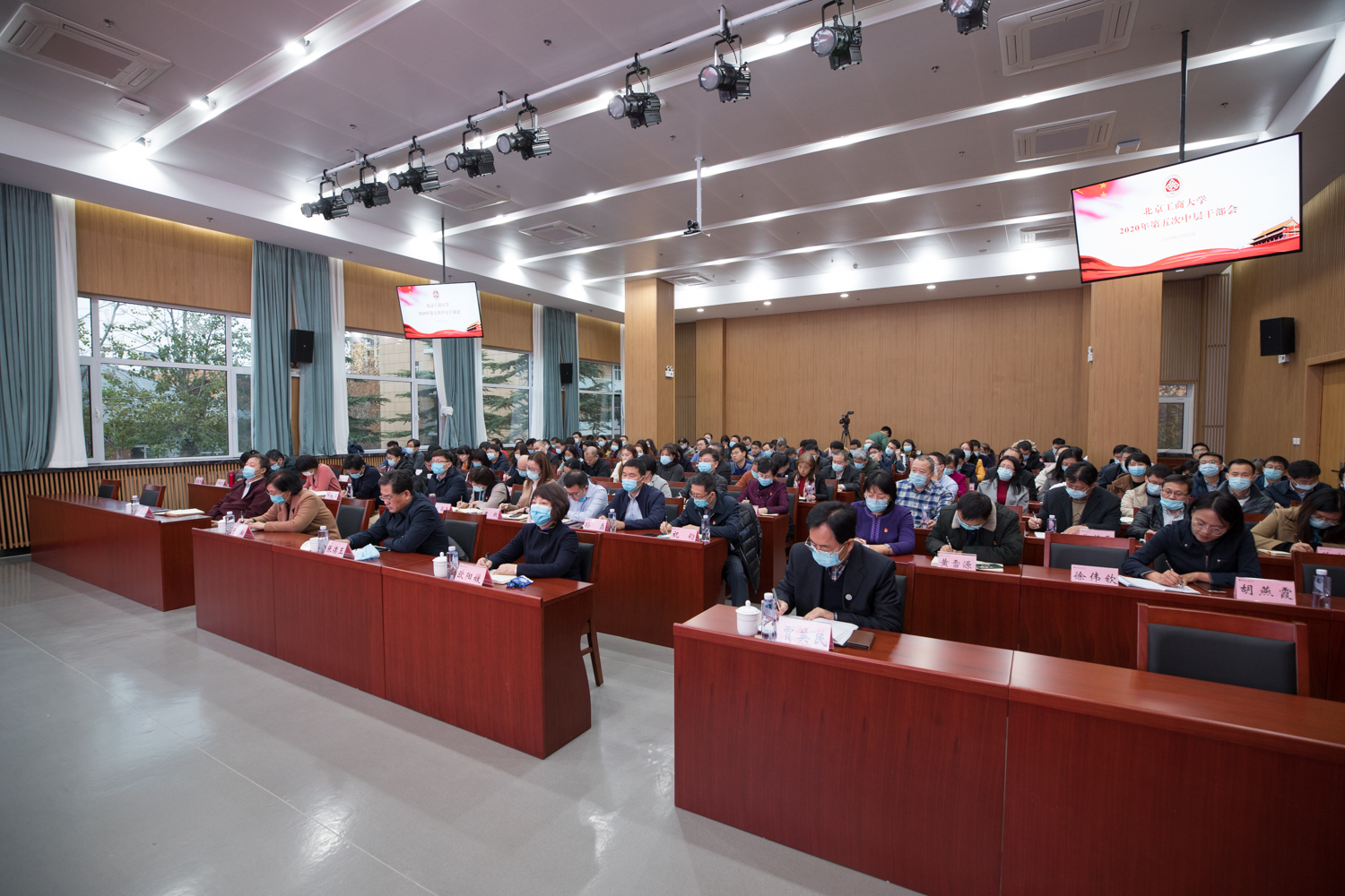 黄先开书记回顾总结了学校前一阶段工作,对近期主要工作进行了安排部署。他谈到,开学以来,学校在疫情防控常态化情况下,有序完成迎新、教育教学等各项工作的同时,重点推进了七十周年校庆、干部聘任、全员岗位聘任等工作。在全校师生员工共同努力下,圆满完成了建校70周年系列庆祝活动,充分展示了学校办学成就,得到了社会各界好评。他感谢所有师生为筹备和组织校庆所付出的辛勤努力,希望全校师生员工、广大校友以70周年校庆为契机,发扬北工商精神,团结拼搏,开拓进取,为建设高水平研究型大学不懈奋斗。他指出,通过贯彻落实中组部《党政领导干部选拔任用工作条例》精神,学习借鉴兄弟院校经验,今年以来学校开展了3次干部聘任工作,这是根据学校发展需要采取的重要改革举措之一,目前此项工作走在市属高校前列,今后要进一步加强干部教育培训,组织高校间交流研讨,不断提升中层干部管理能力和水平,希望全体中层干部保持奋发有为的精神状态,有力推动学校加快发展。黄先开书记还就因疫情等原因推迟的全员岗位聘任工作进行了说明,学校高度重视此项工作,党委常委会已4次专题研究审议,及时听取有关情况汇报,将于今年年底前完成相关工作,希望全体教职工凝心聚力为学校发展贡献力量。
