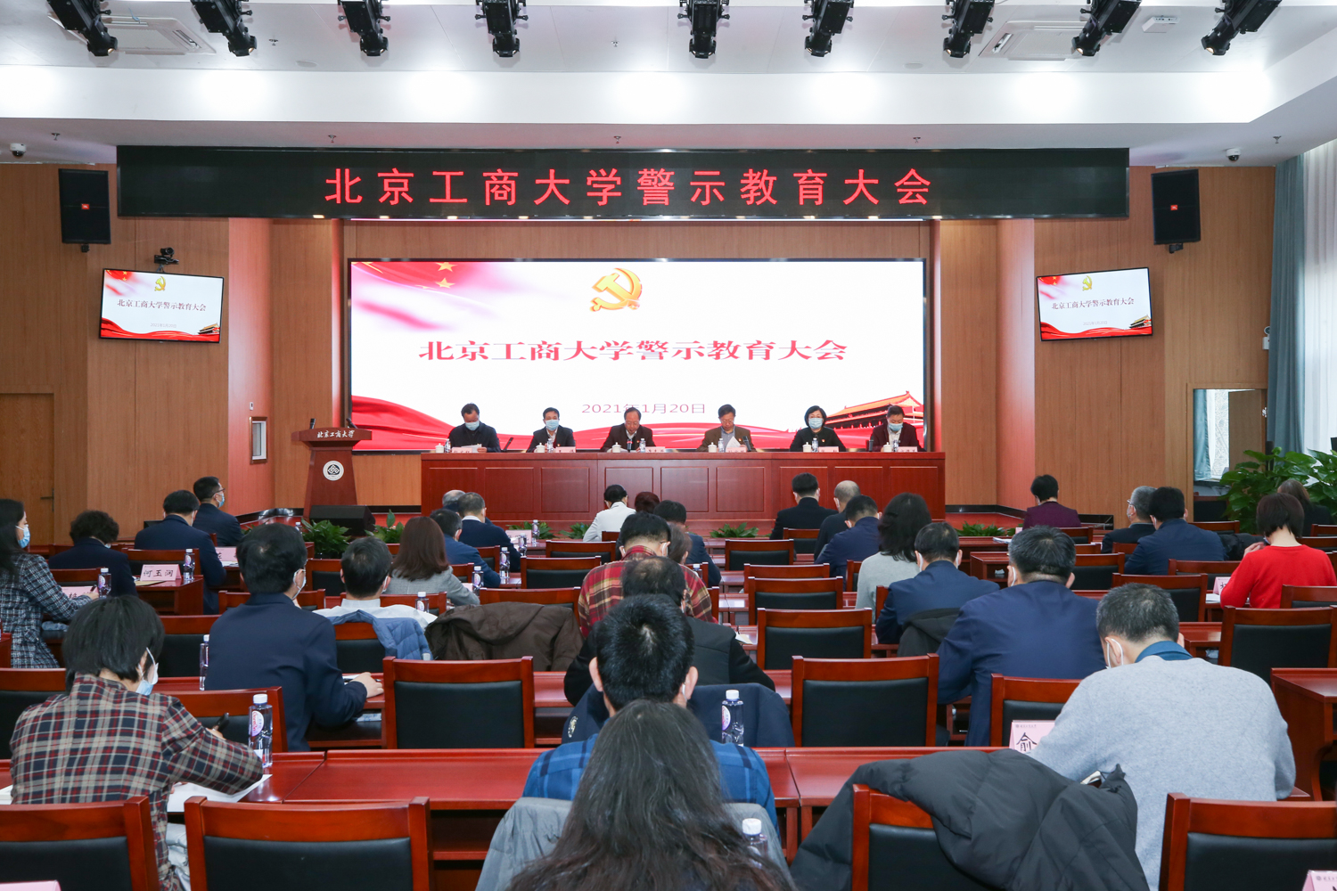 1月20日,学校在阜成路校区召开警示教育大会,通报剖析违规违纪典型案例和突出问题。全体校领导、中层干部、职能部门重点科室关键岗位管理人员参加大会。大会设主会场和两个视频分会场。会议由党委副书记、校长孙宝国主持。