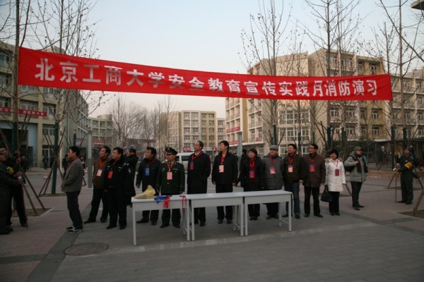 为落实学校关于开展安全教育宣传实践月的活动方案,加强师生员工安全意识,提高安全防范技能,构建平安校园、和谐校园,12月22日下午,学校防火安全委员会在良乡校区五组团对大一新生和后勤人员组织了大规模的消防演习活动。校党委副书记、学校安委会主任、消防演习总指挥卢思锋和副校长呼文亮亲临现场;房山区消防支队徐进团警官到达现场亲临指导;良乡派出所警官王高虎和良乡高教园区办公室杨主任作为嘉宾出席了演习现场。