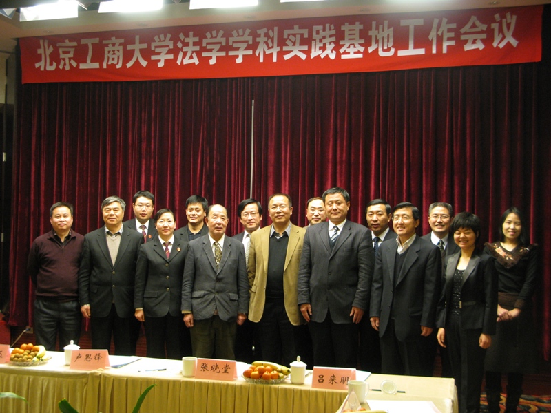 校党委副书记卢思锋致欢迎词,教务处处长张晓堂公布了北京工商大学法学院法学院第二批实践基地名单并为他们颁发铜牌,法学院副院长吕来明宣布了北京工商大学法学院第二批法学学科客座教授名单,法学院院长李仁玉为他们颁发了聘书,法学院党总支副书记文四英老师主持了会议。