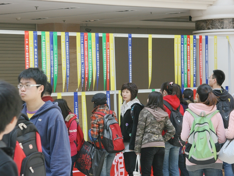在“阅读点燃梦想,知识成就未来”为主题下,我校第四届读书节系列活动从4月19日开始在两校区展开。从读书节标志征集、读书之星的评选、60种优秀图书书评展、组织师生走访美国驻华大使馆图书馆,到23日世界第15个读书日系列活动达到高潮。