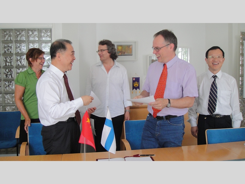 2010年7月21-31日,学校党委书记孙尧东率团应邀访问了芬兰国海门应用科学大学和法国拉罗榭尔高等商学院,双方进行了深入的会谈,签署了面向未来的校际战略合作协议书。此次访问不仅加深了学校与这些大学的联系,而且着眼于长期稳定的平等互利战略伙伴关系就教师互换、干部培训、本科和研究生合作培养等达成了新的共识,为学校国际合作指明了新方向,开辟了新的模式。学校科技处处长王国顺、国际交流与合作处处长罗朝能参加了访问。
