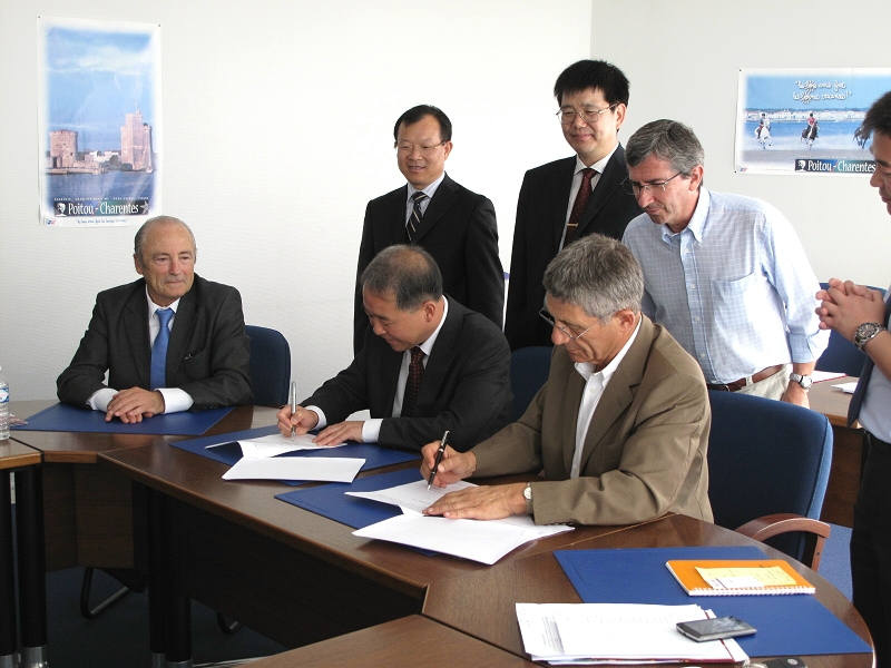 7月28日上午,孙尧东一行应邀来到法国拉罗榭尔高等商学院(Group Sup de Co La Rochelle)访问,与国际关系部主任丹尼尔(Daniel BAUDIN)、旅游学院院长、外语学院副院长、国际发展部周春斌等进行了会谈,拉罗榭尔市商会会长、该校董事会主席罗伯特•布特尔(Robert BUTEL)先生、校长庞龙(Daniel PEYRON)参加了深入合作框架协议签字仪式。我校自2007年与拉罗榭尔高等商学院建立正式合作关系以来,在双方领导的关怀下,双方交流交往密切,正在实施的合作项目有本科生交换项目和双学位项目,我校已经有2名学生赴拉罗榭尔高等商学院参加双学位项目学习,并圆满毕业。