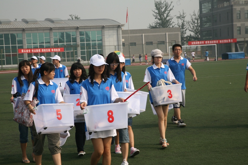 9月5日上午,北京工商大学2010级新生运动会在我校良乡校区操场举行。操场上鼓声隆隆,呐喊阵阵。有这样一群志愿者分布在各个比赛项目的场地,他们身穿蓝色T恤,以饱满的热情在自己的岗位上认真积极地提供着志愿服务,使得整个运动会井然有序地进行。这些志愿者由团委、学生会、青志协以及各院系的学生骨干,学生社团成员和各运动队的同学们组成。