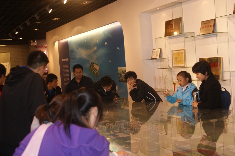 进入正门,“求真、立德、勤奋、创新”的校训映入眼帘,其下镌刻着庆祝建校60周年的前言。怀着崇敬而又好奇的心情,同学们在“导游”的带领下对校史馆进行了全面的参观,进一步深化了对学校的了解。