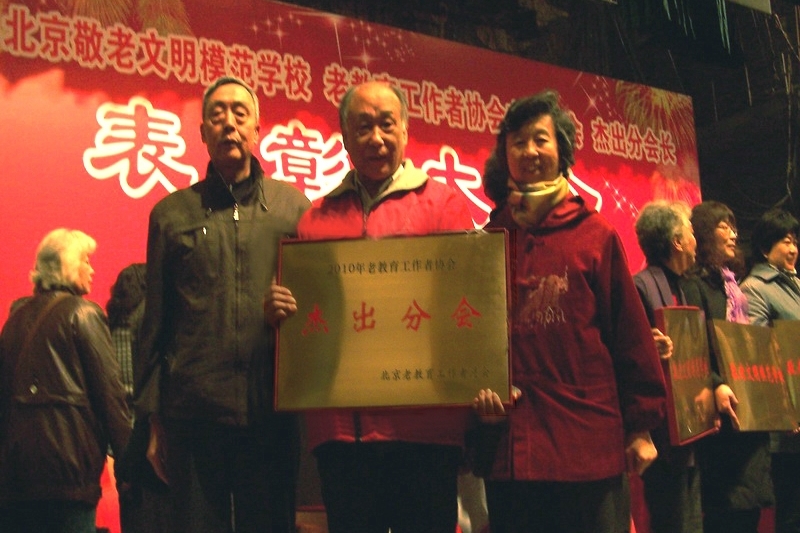 11月26日,我校老教协金乐艺术团管乐团荣获由北京老教育工作者总会评出的“2010年老教育工作者协会杰出分会”称号。我校老教协会长纪大智同志作为代表接受了这项荣誉。