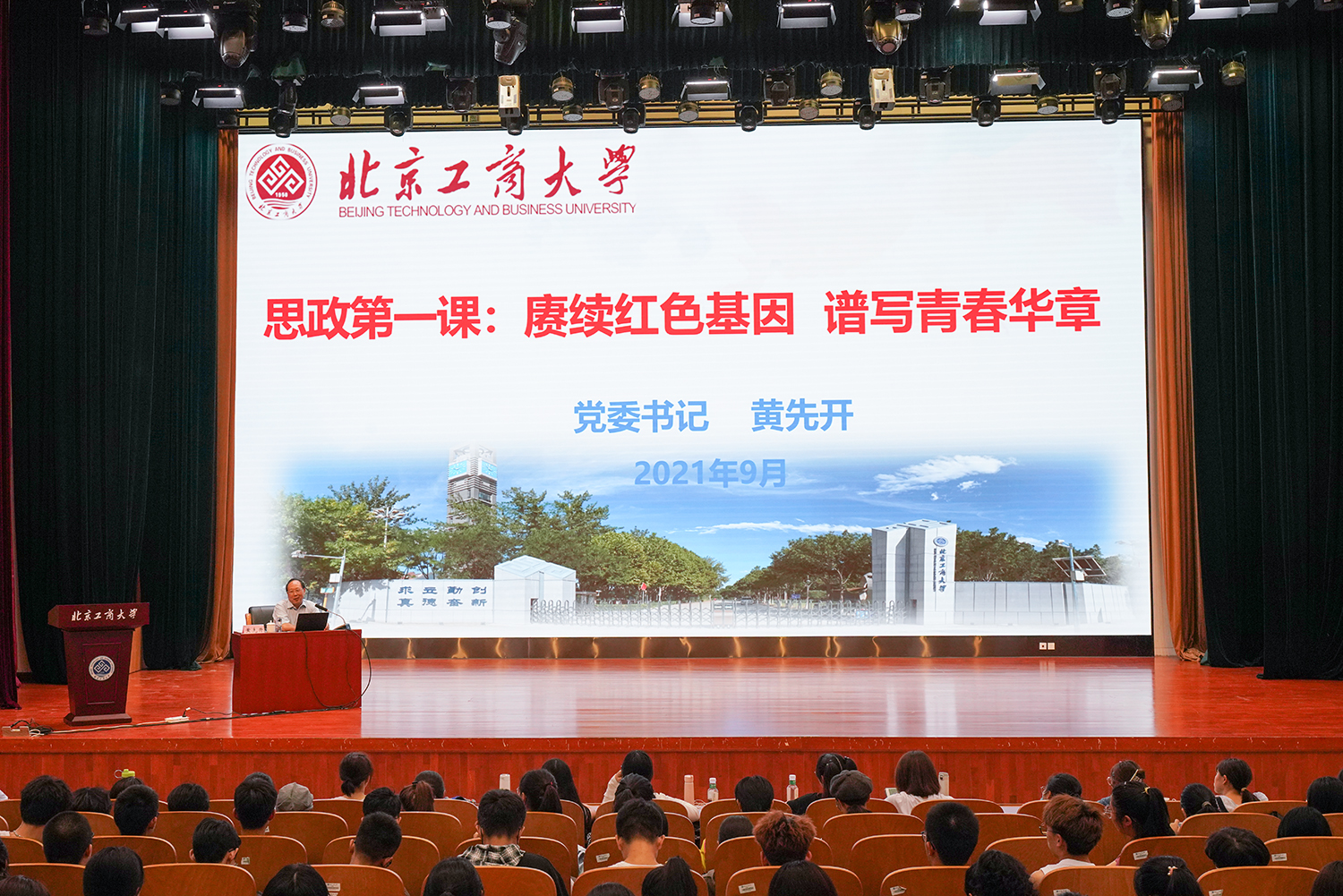 学校党委书记黄先开教授结合思想政治理论课的教学内容和特点,结合学生的成长规律,结合我校的发展历史和实际,以思想政治理论课的重要性、如何学习思想政治理论课等问题为导向;围绕思想政治理论课的地位、思想政治理论课的科学思维教育功能及其对大学生成长成才的重要作用进行了生动活泼的讲解,勉励同学们勇于担当、创造辉煌,深深触动了大学生的心灵。