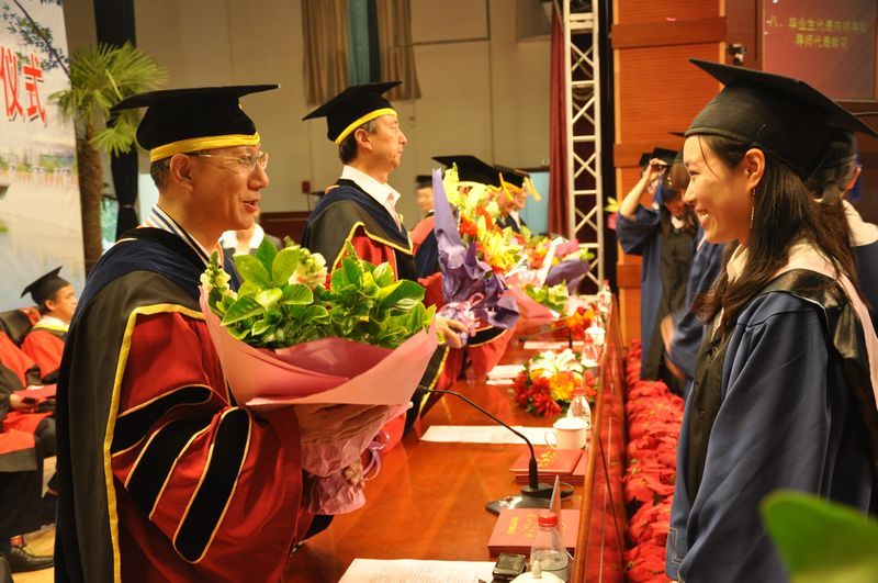 紧接着,出席毕业典礼的30名硕士生导师接受了毕业生的献花,台下响起的热烈掌声传达出了毕业生们对导师的尊敬与深深感谢,有的师生激动的留下了眼泪。