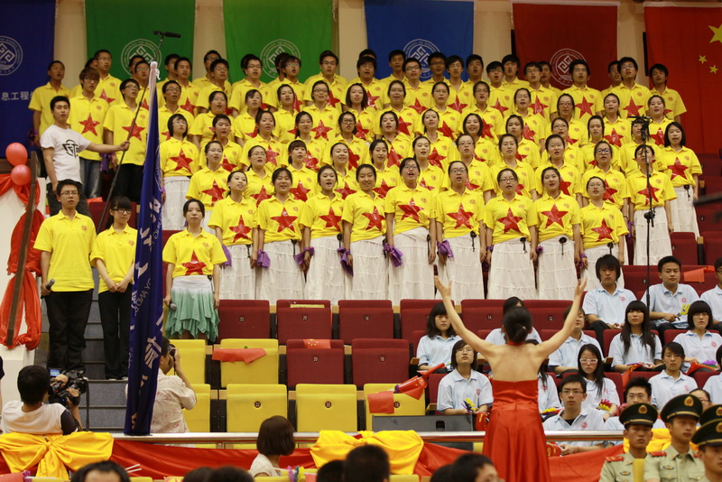 国旗,党旗,校旗;歌声,笑声,掌声,“五月的鲜花,特殊的党日”千人大合唱歌咏比赛热闹非凡、精彩纷呈。各院都精心准备,大展歌喉,歌声时而铿锵,时而深情,表达了北工商学子对祖国、对中国共产党的热爱和团结向上、锐意进取的精神。