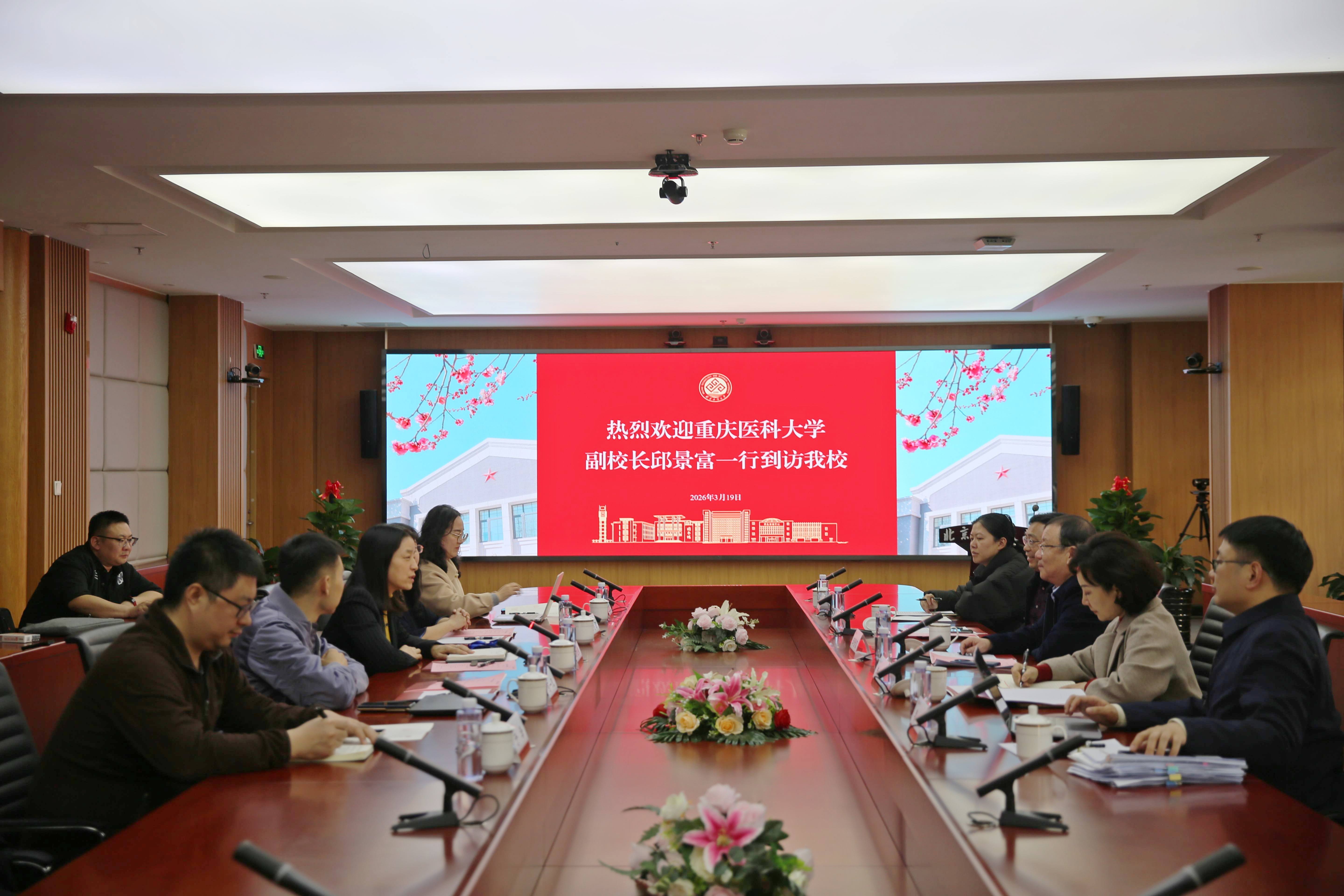 邱景富对我校的热情接待表示衷心感谢。他首先介绍了重庆医科大学的建校历程以及办学规模,并介绍了此次调研的背景。他在交流中指出,此次调研旨在学习北京工商大学国际化妆品学院在体制机制建设、政产学研协同、服务美丽中国等方面的先进经验。他表示,希望通过此次交流建立长效合作机制,实现优势互补、共同提升。