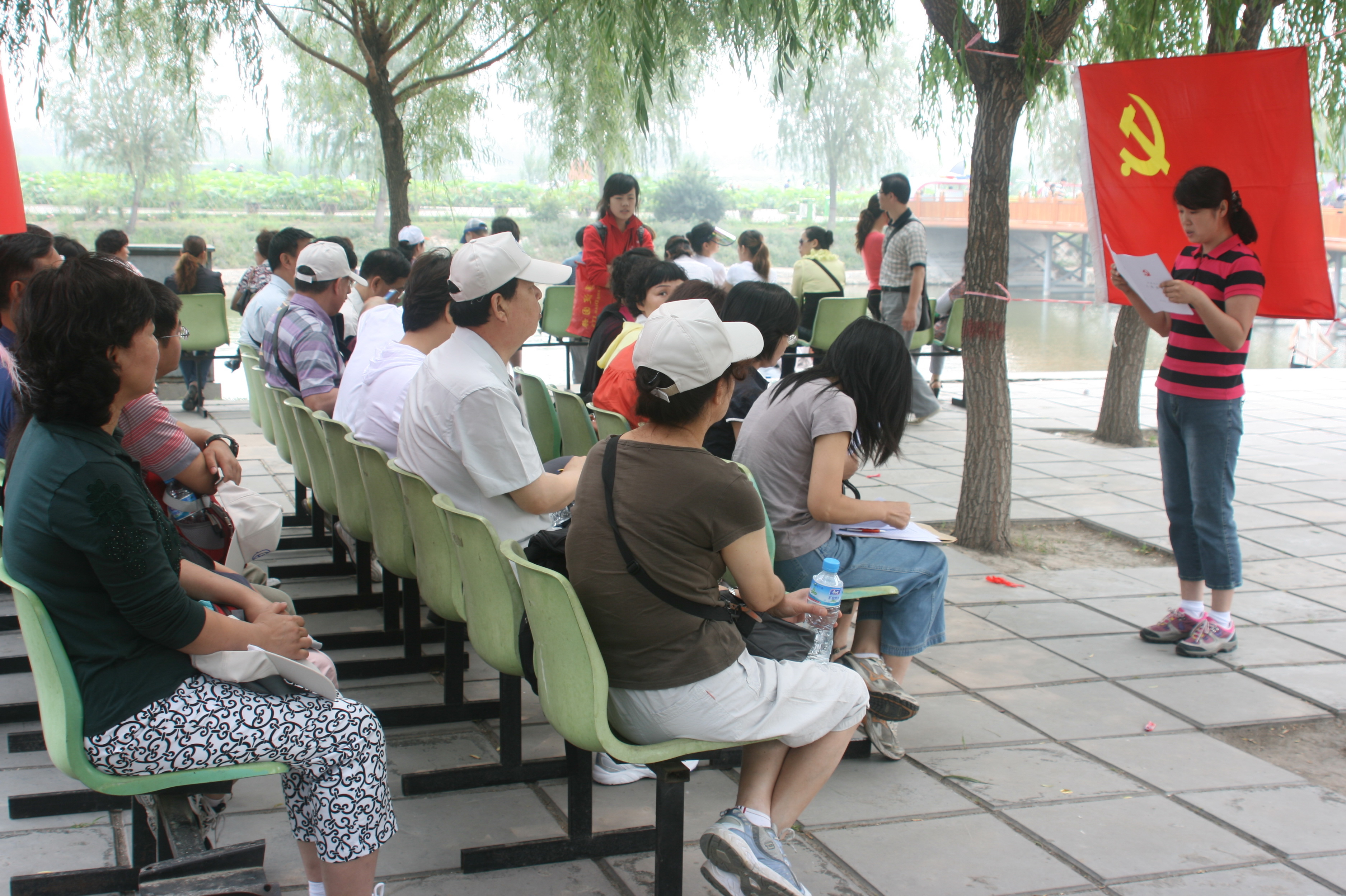 在白洋淀文化苑内,图书馆党支部举行了庄严而隆重的党员发展大会。大会由图书馆党支部书记李艳芬主持。两名新党员分别在鲜红的党旗下宣读了入党志愿书,表达了他们积极向党组织靠拢的决心和热切希望成为一名共产党员的愿望。会议结束后,图书馆全体共产党高声合唱了《没有共产党就没有新中国》,共同表达了对中国共产党90华诞的美好祝福。本次发展大会以爱国主义教育基地为平台,尝试新的组织形式,使所有参会人员有感而发,受益非浅,给大家留下了深刻印象,收到良好效果。