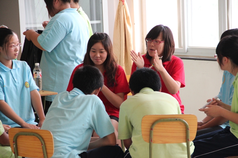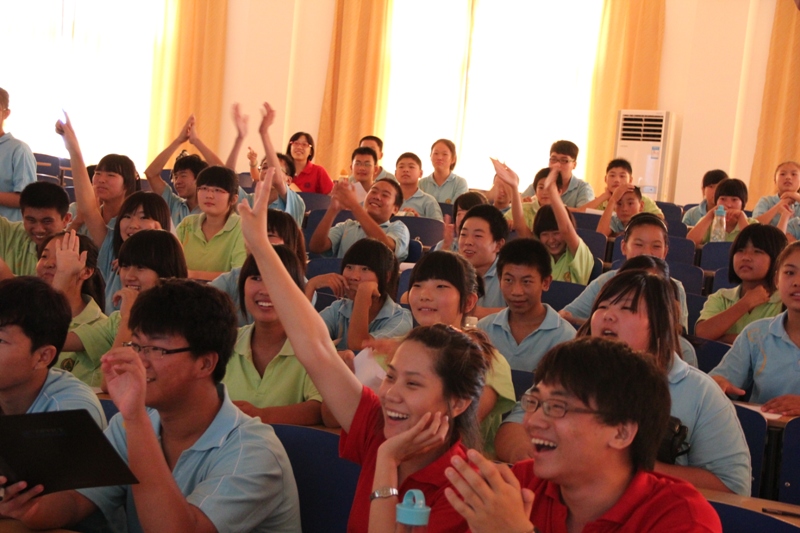 上午8点35分,由实践团成员郑岑主讲的话剧基础培训课在阶梯教室准时开课。尽管这是长沟中学的孩子们第一次接受与话剧有关的辅导培训,但是我们可以明显地感受到他们对于话剧的浓厚兴趣。当郑岑向大家提问“听到‘话剧’这个词的第一感觉”时,孩子们纷纷举手发言,给出了“优美”、“要通过大家的齐心协力来完成”等令人满意的答案。