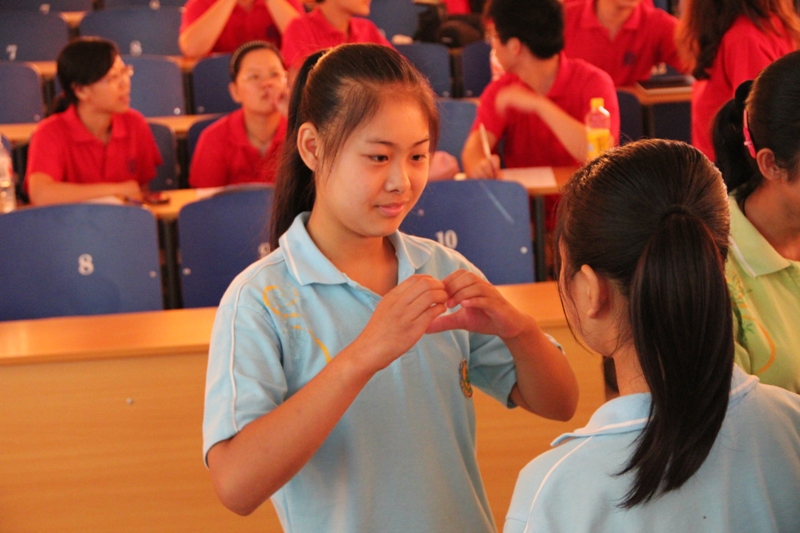 孩子们在听课的过程中都表现得非常专注,尽管这是一个从未涉及过的领域,但他们都试图用心去慢慢体会主讲人所提到的表演要点。而在举例说明情感和语言的运用方法时,刚刚在第七届“商之夜”晚会上有过精彩表现的郑岑也即兴表演了两句当时的经典台词,博得了孩子们热烈的掌声。