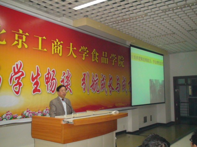 10月20日晚,食品学院新生教育最重要的一个环节——“院士与学生畅谈,引航成长与成才”报告会在良乡校区文二楼举行。北京工商大学副校长、中国工程院院士孙宝国教授为食品学院2011级新生作了专题报告,并与现场同学进行了分享交流。报告会由食品学院党总支书记何猛老师主持,食品学院2011级学生辅导员、班主任及全体新生参加。