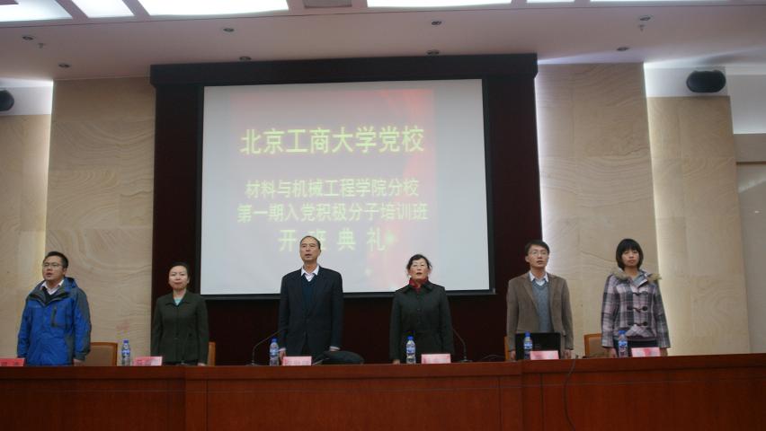 111晚,北京工商大学党校材料与机械工程学院分校第一期入党积极分子培训班开班典礼在良乡校区举行。出席此次典礼的有学校党委副书记卢思锋、学院党总支书记吕东燕、学院党总支副书记马春晖及学院辅导员等。