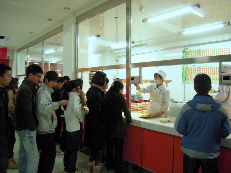 阜成路东区食堂承担着整个阜成路校区基本伙的保障任务,食堂就餐率一直居高不下。但用餐人数较多也带来了比较明显的供求矛盾,尤其是该食堂二层,在用餐高峰期的拥挤和排队无序现象比较严重,师生对此颇有意见。