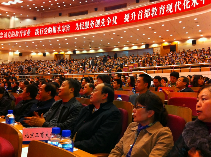 11月15日下午,首都师范大学党委书记张雪同志先进事迹报告会在北京会议中心举行。首都教育系统千余名师生聆听了报告会。我校党委书记孙尧东、副校长张耘、方德英及部分中层干部参加了报告会。