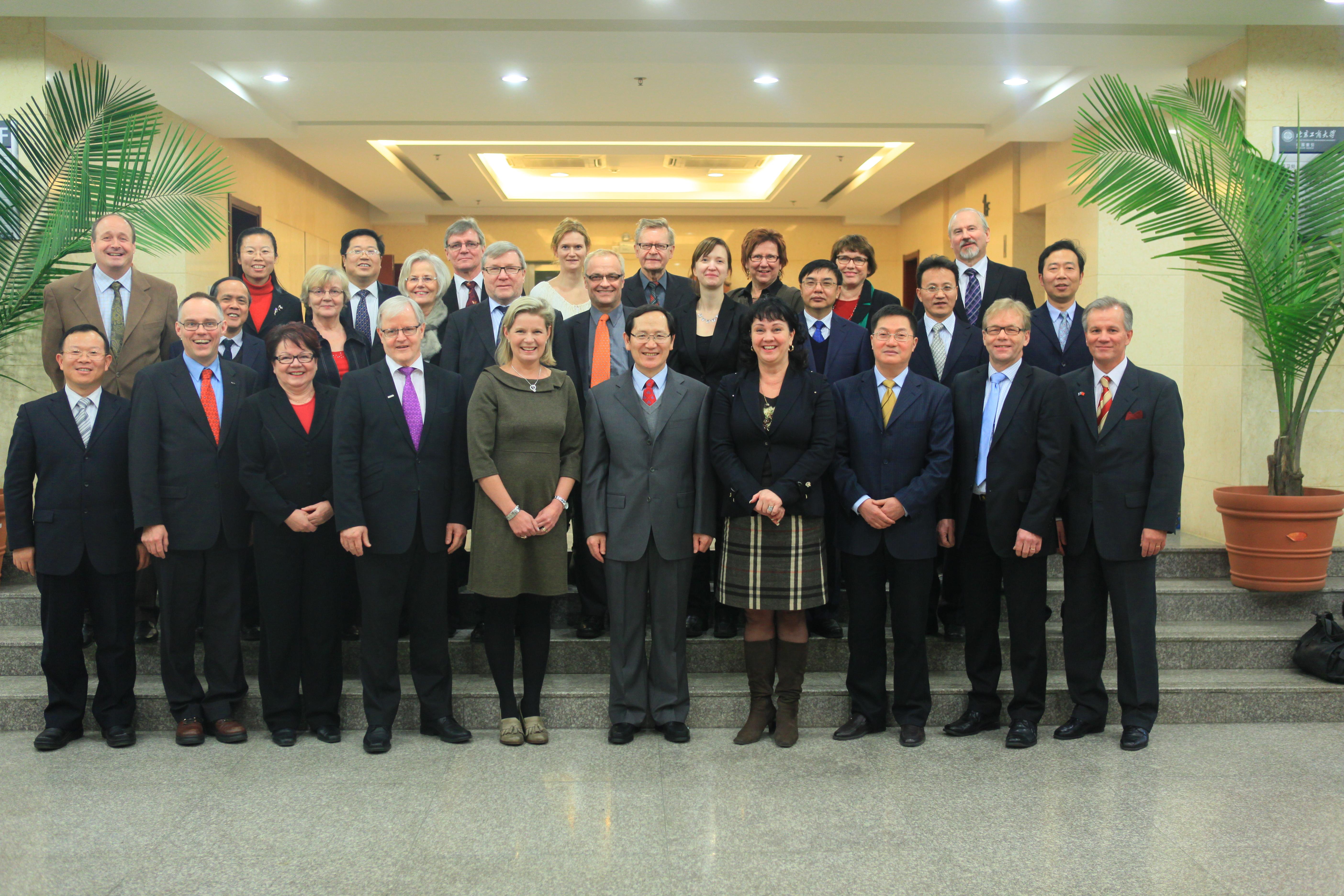 此次芬兰海门市教育代表团由芬兰海门市高等职业教育委员会(Board of the Häme Municipal Federation of Professional Higher Education)、芬兰海门市联合会理事会(Chairs of the Council of the Municipal Federation)和芬兰海门理工大学(HAMK University of Applied Sciences)组成,团员均为组成单位的主席、副主席和校长。