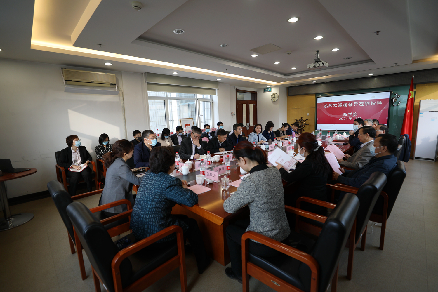 近日,学校党委书记黄先开,党委副书记、校长孙宝国,党委副书记王伟、李中奇,党委常委、副校长郑文红、徐丹丹到商学院调研指导工作。学院班子成员、教授代表和系主任等参加座谈。座谈会由商学院党委书记张春萍主持。