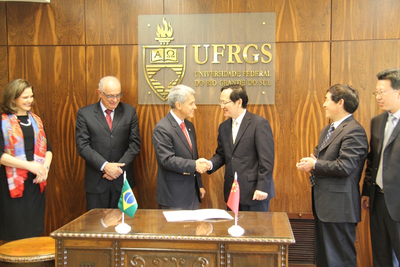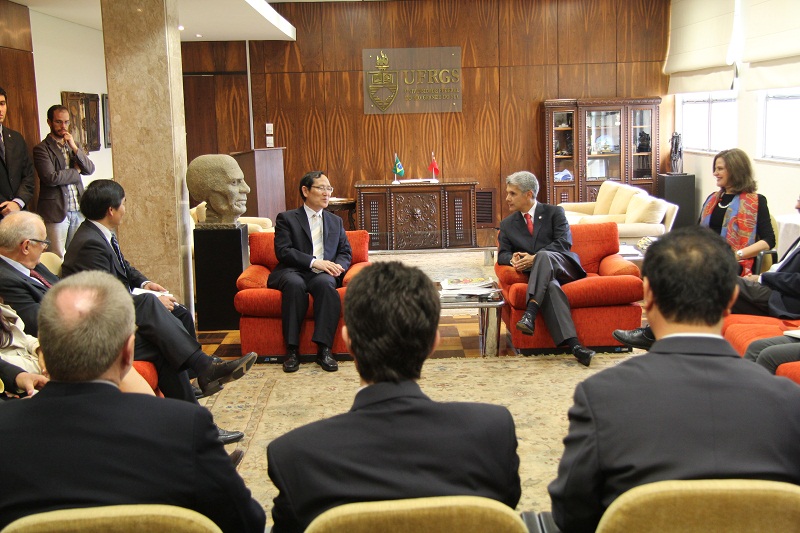 谭校长一行重点访问了巴西南大河州联邦大学(UFRGS: Universidade Federal do Rio Grande do Sul)。该校有120年的办学历史,是巴西一所著名的研究型大学,包括现任总统罗塞夫在内的三位巴西总统毕业于该大学。该校校长卡洛斯·亚历山大·内托(Carlos Alexandre Netto)教授对谭校长一行来访表示热烈欢迎,他表示,十分高兴能与北京工商大学建立伙伴关系,并开展学术交流和人才培养合作。