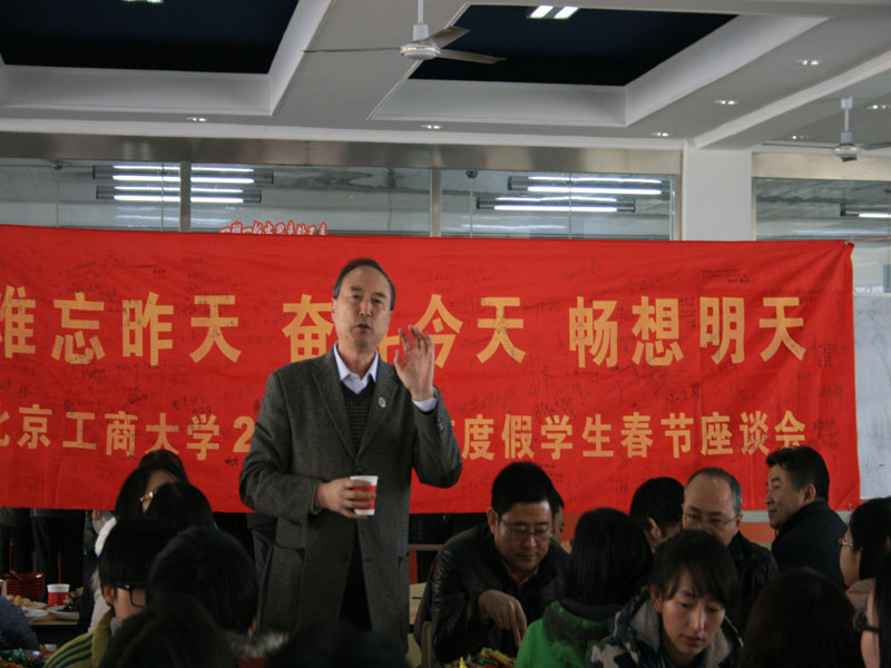 卢思锋副书记代表学校党委和行政部门向全体留校学生送上衷心的祝福,通过他们向其家人致以节日的祝福,并为所有学生赠送了节日大礼包、发放了节日补助。他希望同学们在体验北京过年气氛时,一定要注意安全,让远在家乡的父母、亲人放心,并勉励大家在马年里学习、实践全面发展,为社会发展做出贡献。