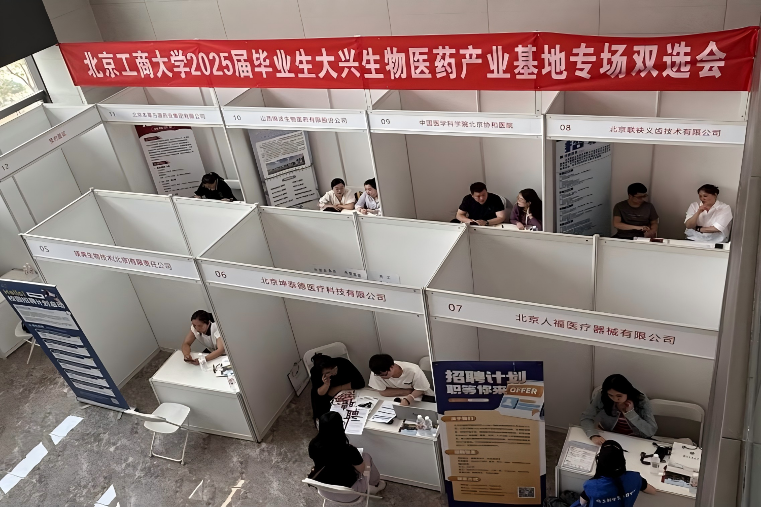 为充分落实教育部“凝心聚力拓岗位 百日冲刺促就业”相关工作要求,打好毕业生就业攻坚战,5月21日下午,由北京工商大学和大兴生物医药基地联合举办的2025届毕业生“生物医药产业基地专场”双选会在良乡主校区轻工食品大楼顺利举办。