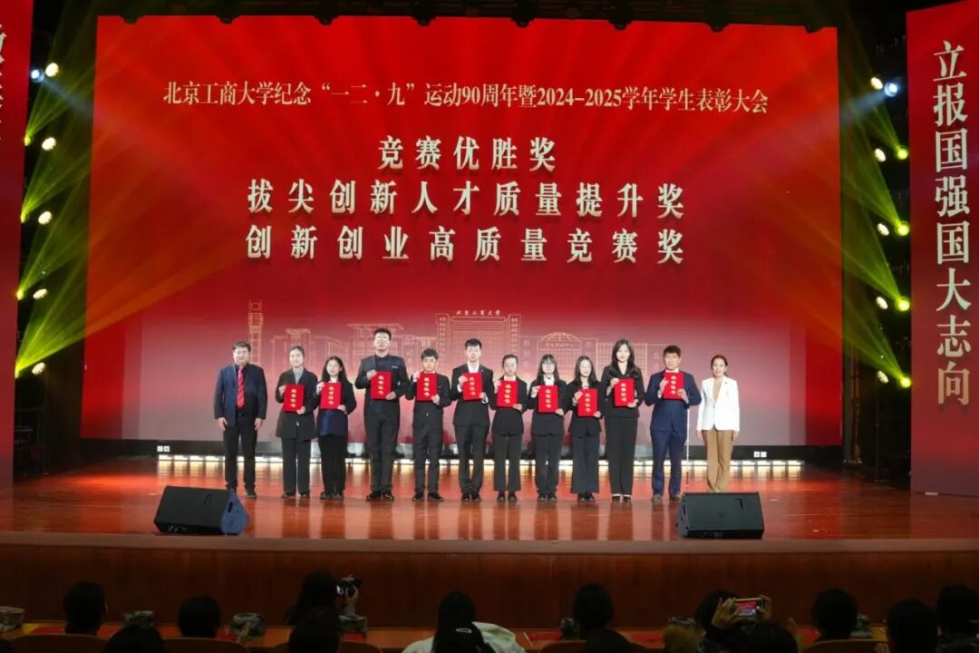 12月10日,北京工商大学纪念“一二·九”运动90周年暨2024-2025学年优秀学生表彰大会在良乡主校区举行。校领导沈千帆、郭建华、李中奇、宋晓欣、杨红、徐丹丹、邓祥征出席大会,相关职能部门负责人、各学院党政领导、校友奖学金代表、校友代表、教师代表、获奖学生代表参加大会。大会荣幸邀请到了当年曾参与和组织“一二·九”运动的黄华、陆平两位革命先辈的后代:黄玫女士与陆莹女士,与全场师生一起见证传承历史伟绩,表彰青春榜样,激昂奋斗力量。
