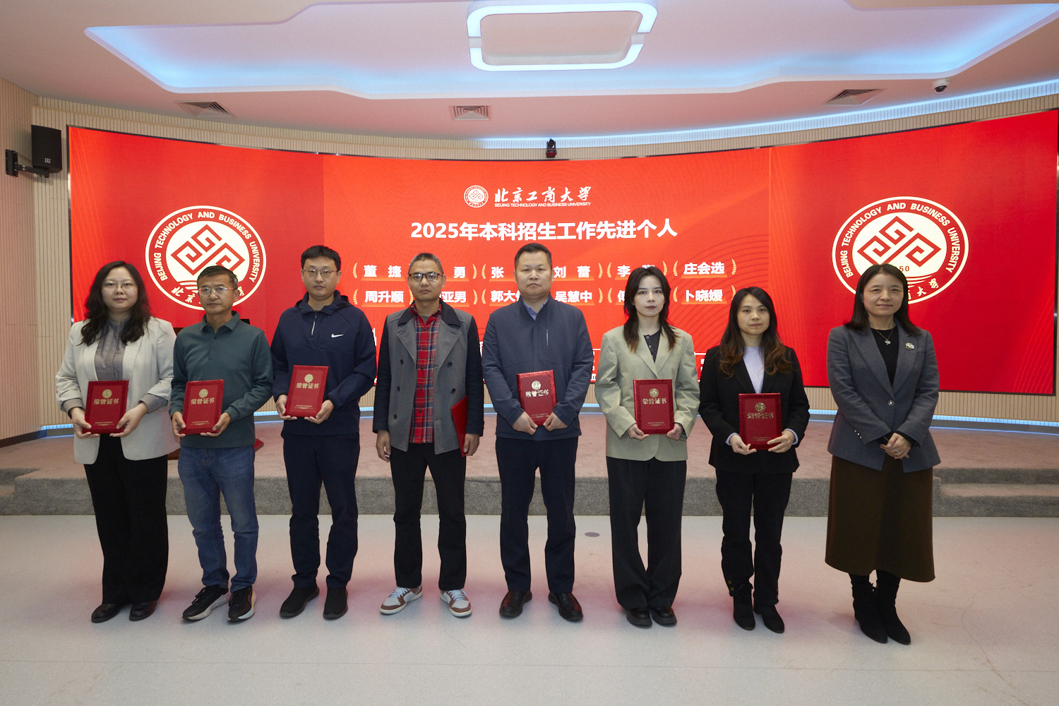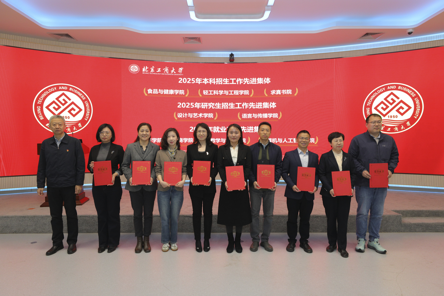 会上对2025年度招生就业工作先进集体和先进个人进行了表彰,沈千帆为先进集体颁奖,李中奇、毛新述、刘艳楠分别为就业工作、研究生招生、本科招生先进个人颁奖。