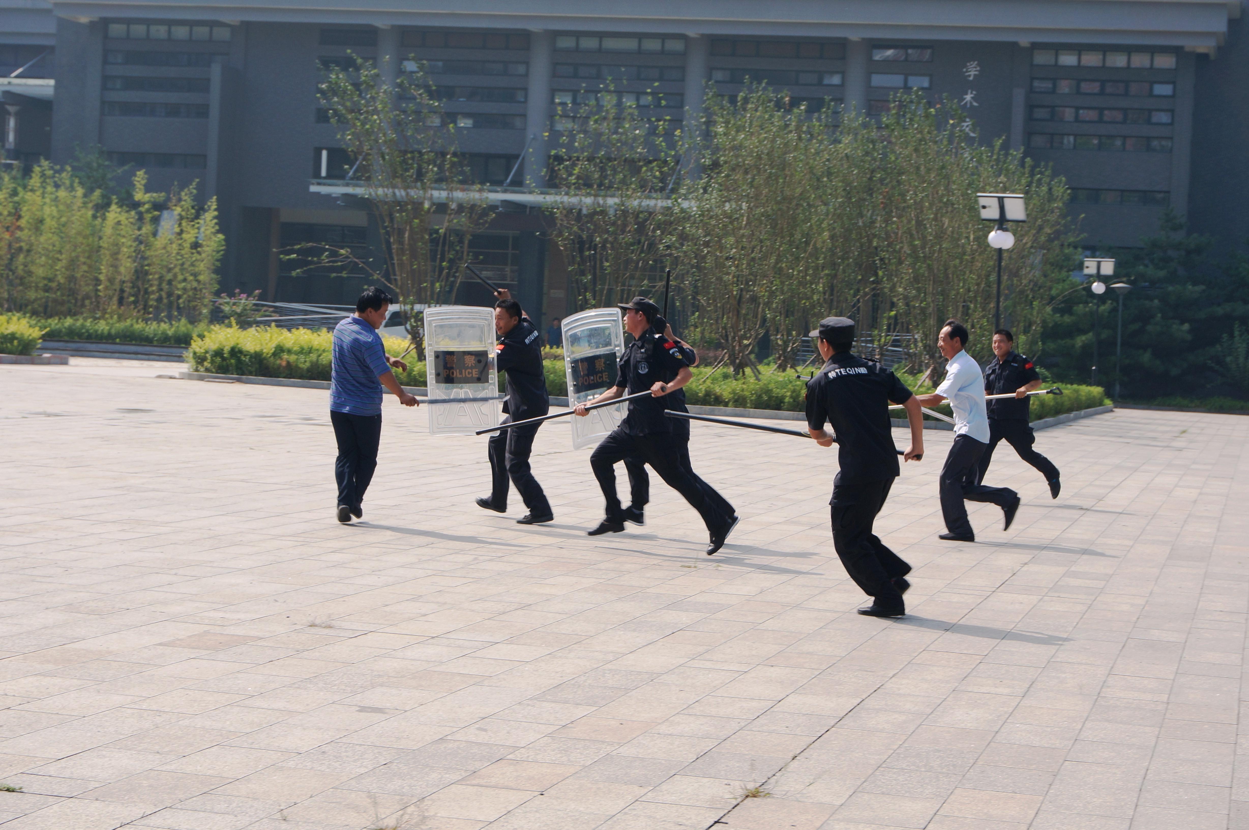 8月20日学校举行了反恐防暴专项演练活动。此次专项演练在不预先通知、没有脚本的情况下真实模拟暴徒手持凶器、强闯校园的情景。学校防暴突击队快速处置、迅速将暴徒制服并移送公安机关处理。通过演练,使队员进一步掌握了应急维稳行动预案,熟悉在执行各种任务中的程序和要求,有效锻炼队员在处置突发事件中“召之即来、来之能战”的快速反应能力。
