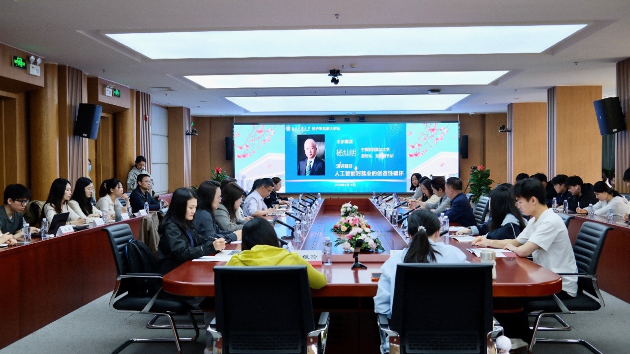 4月18日下午,北京工商大学“经济学名家大讲坛”第七讲在阜成路校区举办。中南财经政法大学原校长、党委副书记杨灿明教授应邀做客大讲坛,作了题为“人工智能对就业的创造性破坏”学术报告。学校党委常委、副校长徐丹丹主持报告会。经济学院党委书记张春萍、执行院长詹新宇,学校人事处副处长、人才工作办公室主任于明哲,以及经济学院师生代表70余人参加此次大讲坛。