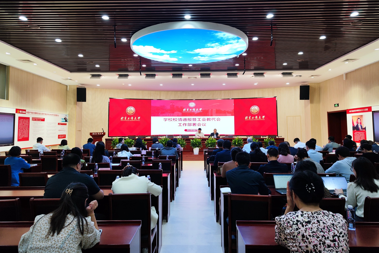 会上,郑文红对近期学校情况进行通报。他谈到,学校通过市属高校分类发展评估,正式确定为北京市重点建设的高水平研究型大学。在学校大力推进高水平研究型大学建设过程中,当前有三项重要改革:一是把办学主体转移至良乡主校区,教职工在良乡主校区办公。学校将加快改造建设,以更好满足教职工办公和生活需求。二是完成学校机构设置调整,他阐释了在新时代首都高质量发展和学校建设高水平研究型大学的新阶段,做好这项工作的现实需要和重要意义。三是不断完善后勤社会化改革。在广泛开展社会调研后,公共事务处借鉴兄弟院校成熟经验,引进第三方服务,采用彩虹巴士社会化购买服务,为师生的通勤提供保障。他还分析了国际国内形势,在当前国家教育高质量发展时期,学校要大力加强学科建设,加强创新人才培养,加快促进高水平研究型大学的建设。希望各级干部和广大教职工提高站位,征集各方意见建议,凝聚智慧,达成共识,共同为学校发展贡献力量。