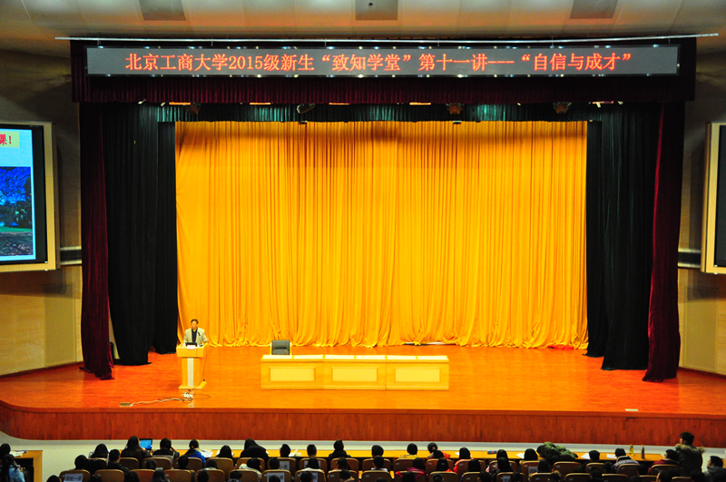 11月26日晚,大雪过后的温度虽然很低,但致知学堂开讲前半小时良乡校区A报告厅里已经座无虚席,过道里也挤满了前来听讲的学生。大一新生和团校学员一同期待着今天的主讲人、同学们心中的偶像、校长孙宝国院士的精彩演讲。