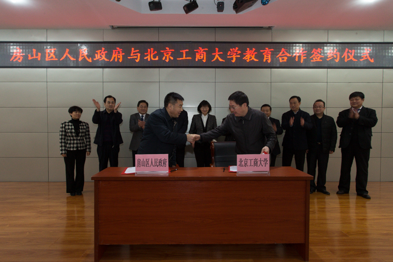 随后,吴会杰副区长、李朝鲜副校长代表双方签署了教育合作协议。根据协议,双方将密切合作,加强研究和实践,依托我校的教育资源优势,为房山区基础教育可持续发展提供政策咨询和学术支持,为我校的师生提供实践基地和成果转化基地。同时,将房山区良乡三中命名为“北京工商大学附属中学”,良乡中心小学命名为“北京工商大学附属小学”。