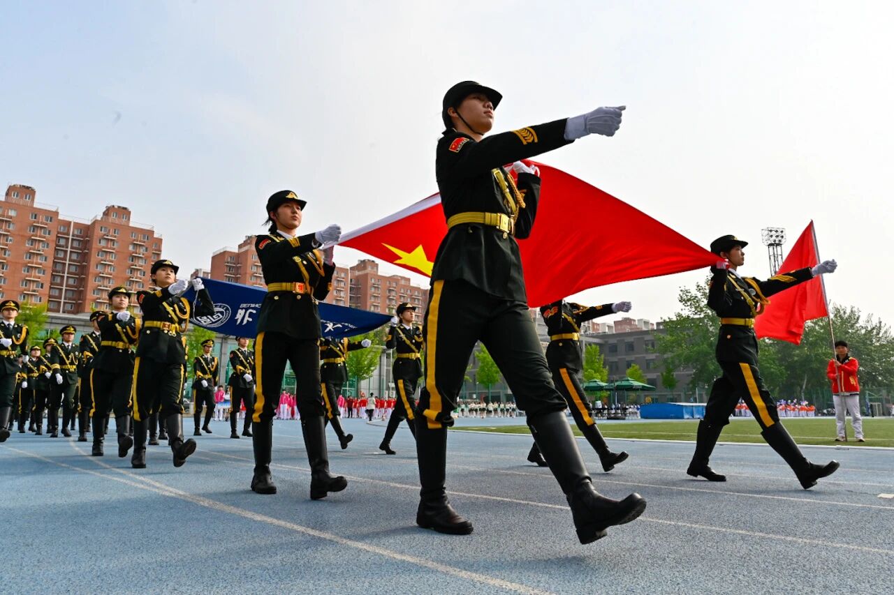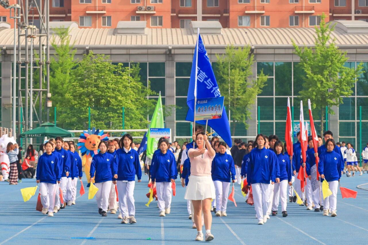 语言与传播学院方阵昂扬入场,以语言为桥、以传播为翼,用速度与协作致敬峥嵘岁月、彰显青春志气。